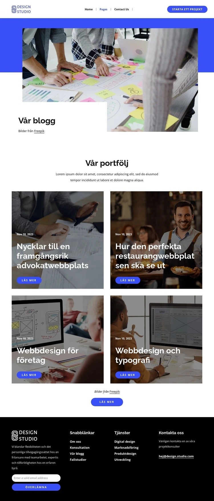 När du använder Mallbyggare kommer du att kunna justera färger, teckensnitt, rubrik och fooer, layout, kolumner och andra designelement, samt innehåll och bilder.