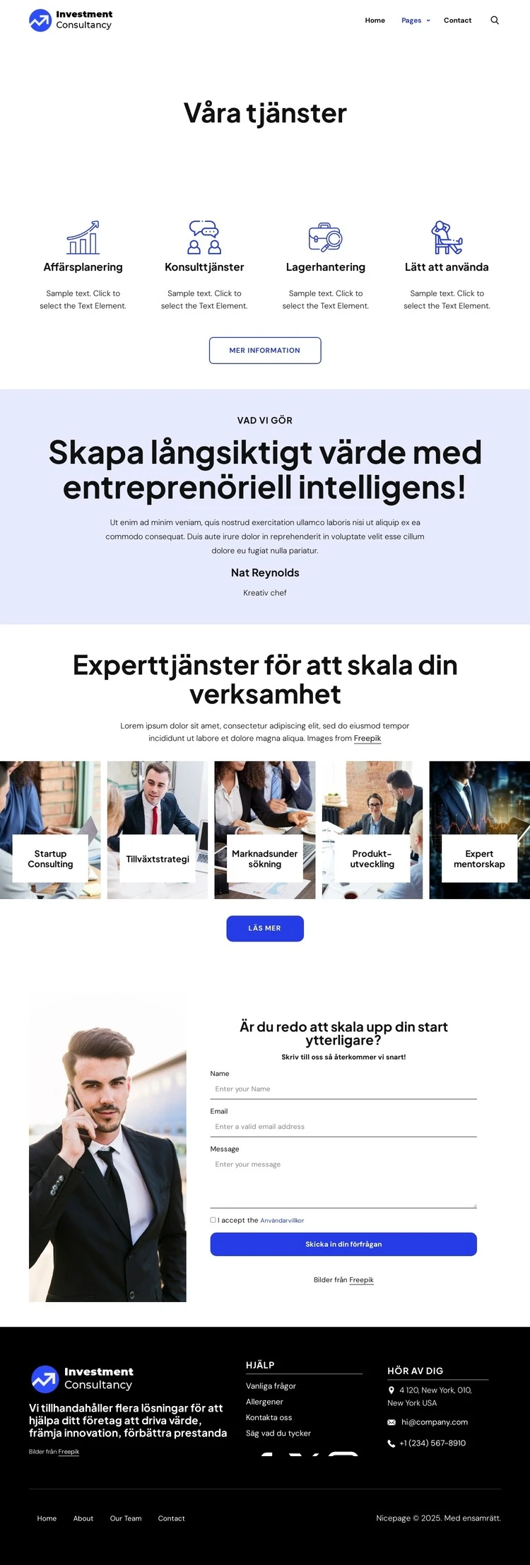 Professionella mallar. Lyhörd, helt anpassningsbar med enkel Drag-n-Drop Nicepage-redigerare. Justera färger, teckensnitt, sidhuvud och sidfot, layout och andra designelement, samt innehåll och bilder.