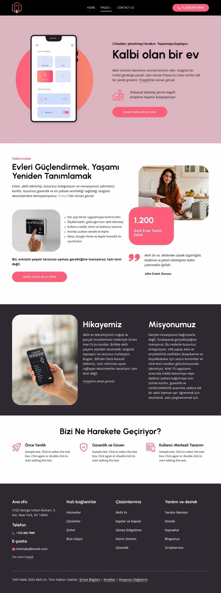 Web Sitesi Şablonu Oluşturucu kullanırken renkleri, yazı tiplerini, başlık ve fooer'ı, düzeni, sütunları ve diğer tasarım öğelerinin yanı sıra içerik ve resimleri de ayarlayabilirsiniz.