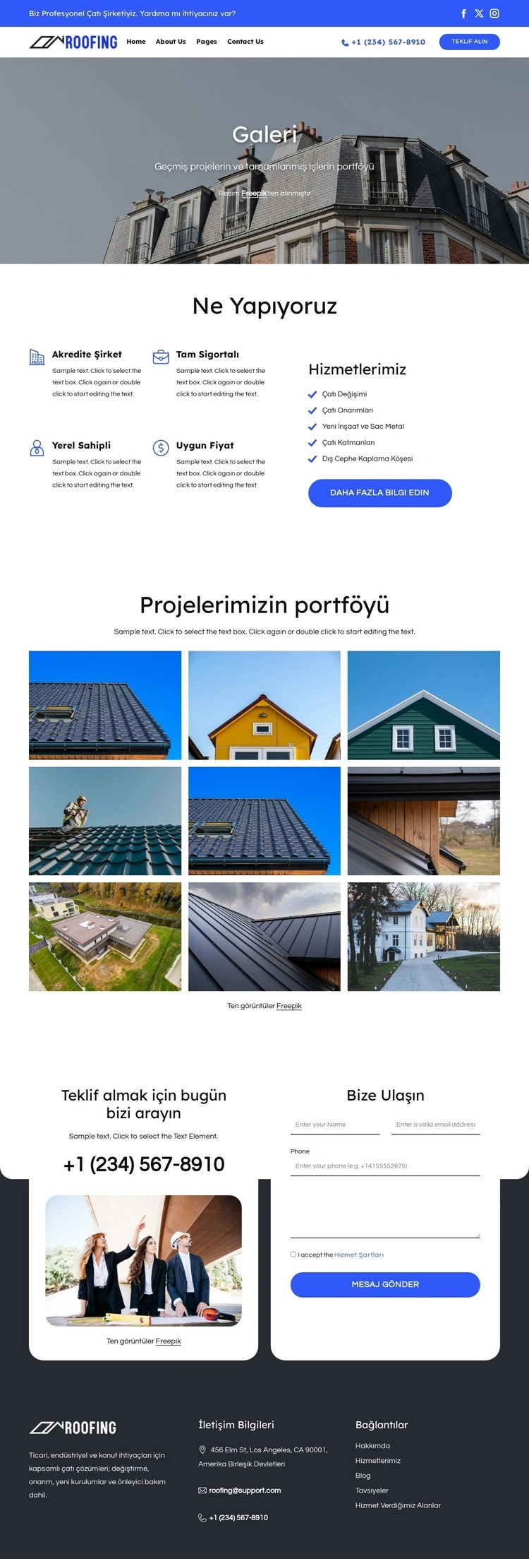 WordPress Web Sitesi Oluşturucu kullanırken renkleri, yazı tiplerini, başlık ve fooer'ı, düzeni, sütunları ve diğer tasarım öğelerinin yanı sıra içerik ve resimleri de ayarlayabilirsiniz.